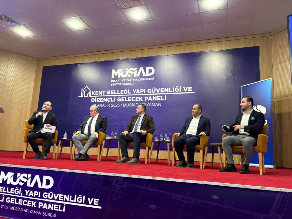 Adıyaman’da, MÜSİAD Şubesi ev sahipliğinde, MÜSİAD İnşaat ve Yapı Malzemeleri Sektör Kurulu tarafından düzenlenen "Kent Belleği, Yapı Güvenliği ve Dirençli Gelecek" paneli, 6 Şubat 2023’teki büyük depremin ardından şehirlerin geleceği üzerine kapsamlı bir değerlendirme yaptı. Etkinlikte, şehir belleği, yapı güvenliği ve dirençli şehirler gibi kritik konular tartışıldı.