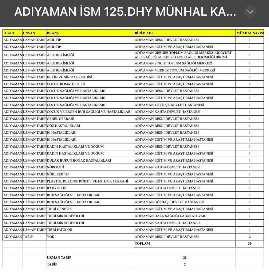 Ataması yapılan tüm hekimlerimize görevlerinde başarılar diliyor, bu güzel gelişmenin Adıyaman’ımıza hayırlı olmasını temenni ediyorum "dedi.