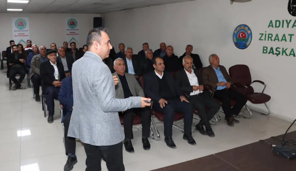 Adıyaman Tarım ve Orman İl Müdürlüğü ile Tarım Sigortaları Havuzu (TARSİM) iş birliğinde düzenlenen toplantı, Adıyaman Merkez Ziraat Odası toplantı salonunda yapıldı. İl Müdürü Abdulkadir Akkan başkanlığındaki programa oda ve birlik başkanları, sektör temsilcileri, çok sayıda çiftçi ve kurum personeli katıldı.