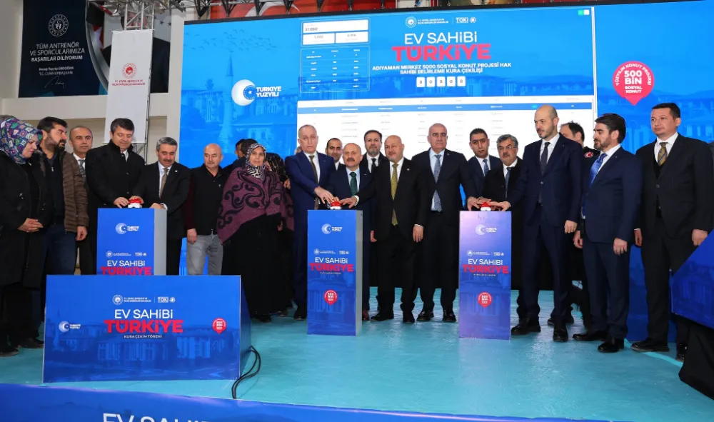 Cumhuriyet tarihinin en büyük sosyal konut projelerinden biri olan 500 Bin Sosyal Konut Projesi kapsamında, Adıyaman’da tarihi bir an yaşandı. Asrın felaketini atlatan ancak asla pes etmeyen Adıyamanlılar için umut dolu bir başlangıca ev sahipliği yaptı. Yenimahalle Spor Salonu’nda gerçekleştirilen ilk kura çekimi, Adıyaman’ın yeniden ayağa kalkışının simgesi oldu.