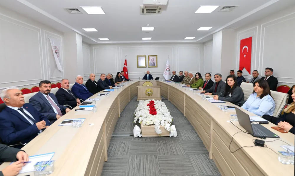 Valilikte düzenlenen toplantıya, Abdurrahman Tutdere, Mehmet Keleş, Vali Yardımcısı Emine Karataş ile ilgili kamu kurumlarının amirleri katıldı.
