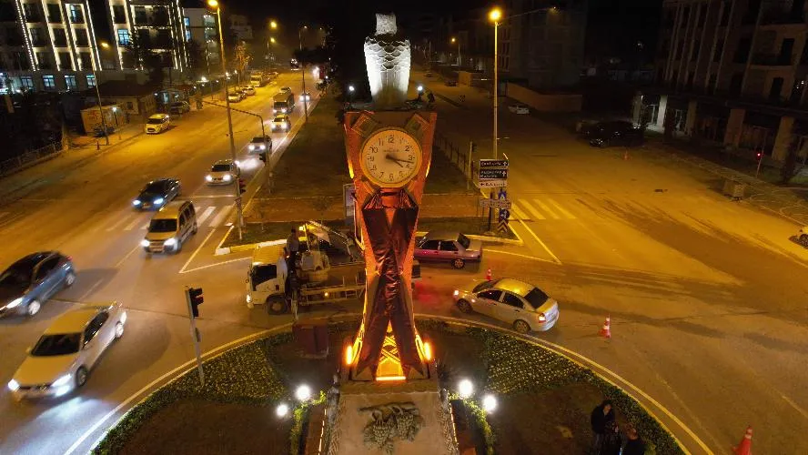 Depremin meydana geldiği 6 Şubat sabahı saat 04.17’de duran ve o günden bu yana kentin ortak hafızasında derin bir anlam taşıyan Saat Kulesi, Temizlik İşleri Müdürlüğü ekipleri tarafından baştan sona yıkanarak anma törenlerine hazır hale getirildi. Çalışmalar kapsamında kulenin çevresinde de detaylı temizlik ve çevre düzenlemesi gerçekleştirildi.