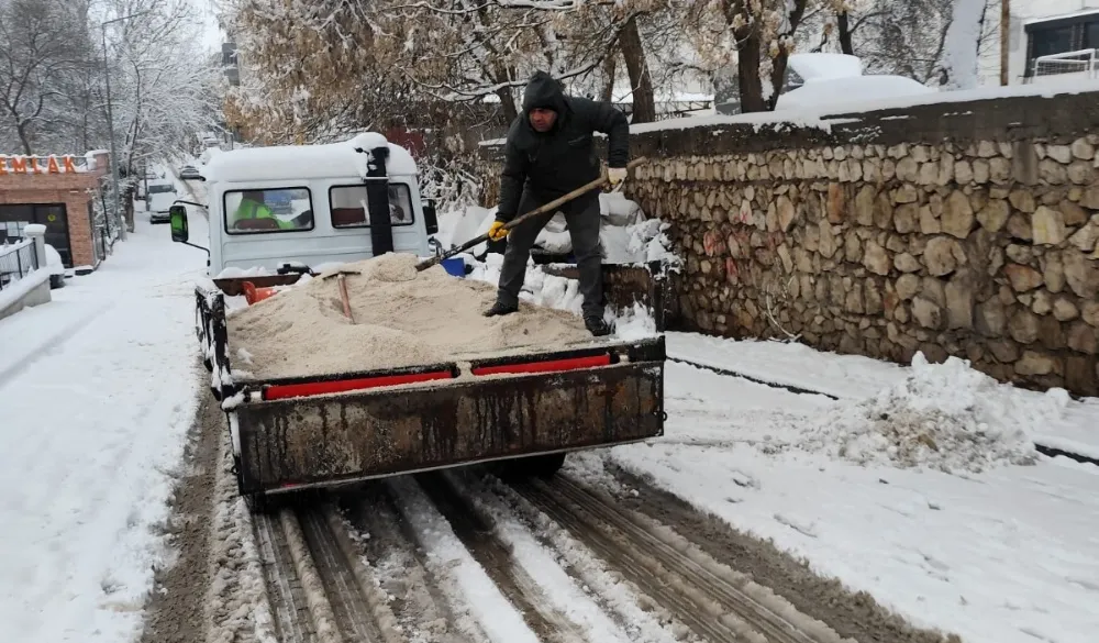 Belediye ekipleri, başta ana arterler olmak üzere mahalle yolları, kaldırımlar ve kamuya açık alanlarda kar küreme, tuzlama ve temizlik çalışmalarını titizlikle yürütürken, buzlanmaya karşı gerekli tüm önlemleri alıyor.