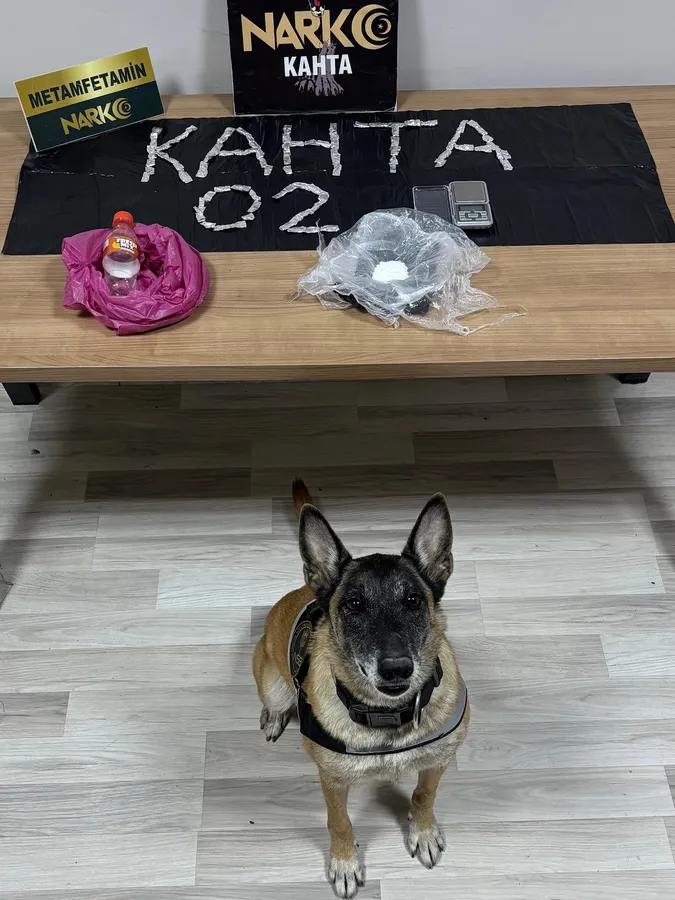 Çalışmalar neticesinde düzenlenen narkotik dedektör köpeğinin katıldığı operasyonda 94 parça halinde satışa hazır vaziyette fişeklenmiş toplam 52,85 gr metamfetamin maddesi ve alışır vaziyette hassas terazi ele geçirildi.