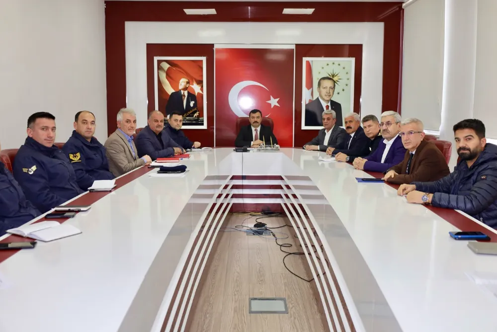 Kaymakam Muhammed Üsame Soysal başkanlığında, ilçe protokolü ve ilgili kurum amirlerinin katılımıyla gerçekleştirilen toplantıda, yıkım sürecinin mevzuat hükümleri çerçevesinde yürütülmesi ve kurumlar arası koordinasyonun sağlanmasına yönelik hususlar ele alındı.