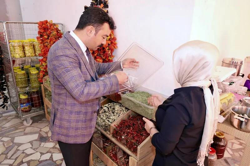 Badem Eli Kahta Kadın Kooperatifini ziyaret eden Kahta Kaymakamı Muhammed Üsame Soysal, çalışmalar hakkında bilgi alarak üretilen ürünleri yerinde inceledi.