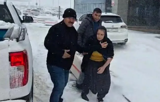 Adıyaman’da etkili olan yoğun kar yağışı sırasında, Vartana Geçici Yaşam Alanı’nda yaşayan ve hastaneye sevk edilmekte olan yaşlı bir çiftin bulunduğu ambulans, olumsuz hava koşulları nedeniyle yolda mahsur kaldı.