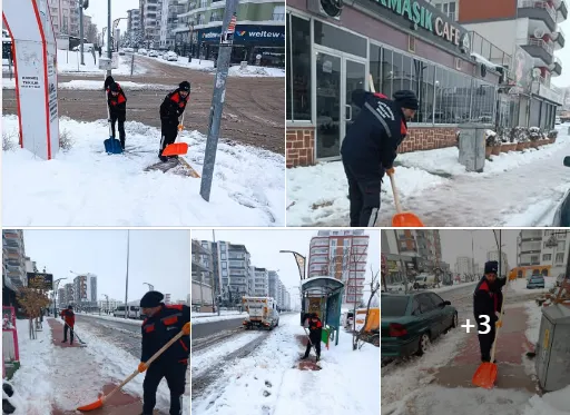 Gece boyunca yürütülen çalışmalarla ana arterler açık tutulurken, sabahın erken saatlerinden itibaren şehir merkezinde yaya güvenliğini sağlamak amacıyla kapsamlı kaldırım temizliği başlatıldı.