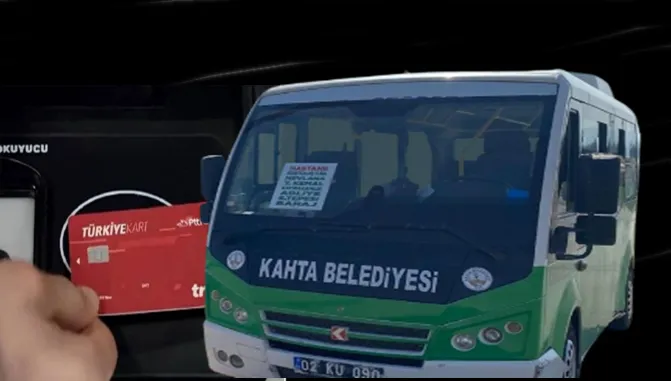 Yeni uygulama ile 1 Ocak 2026 tarihinden itibaren Kâhta Belediyesi'ne ait toplu taşıma araçlarında nakit ödeme kabul edilmeyecek. Ödemeler Türkiye Kart ve kredi kartı ile yapılacak.