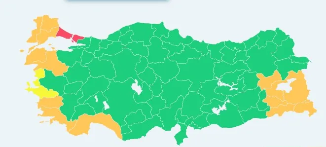 Riskler: Ani sel, taşkın, düşük kotlu alanlarda su baskını ve trafikte görüş mesafesinin azalması.