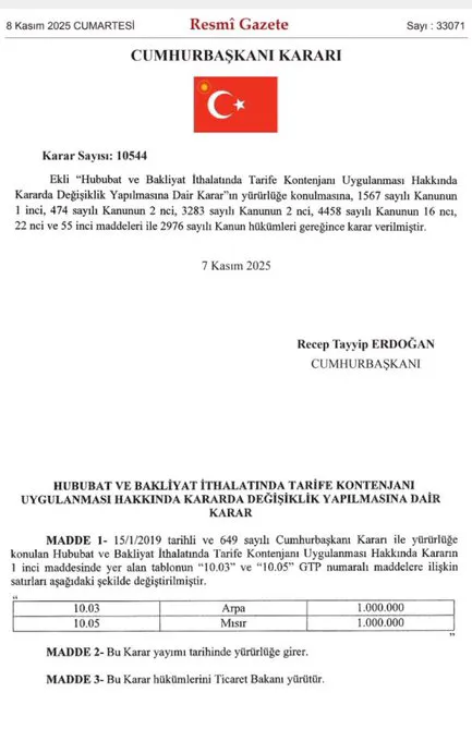 Ceviz'i Çin'den; Buğday'ı Rusya ve Ukrayna'dan; Et'i Brezilya, Uruguay ve Paraguay'dan; pirinç, tütün, kuru yemiş ve meyveyi ABD'den ithal eder hale geldik. Bu yeni kararla Mısır ve Arpa'yı da ithal etmeye devam ediyoruz. Bir sabah uyanıldığında üzerine fiyat etiketi konulacak Türk tarım ürünü bulamayacağız. Bu karardan vazgeçin. Türk çiftçisini korumak, vatan sınırlarını korumakla eşdeğerdir."