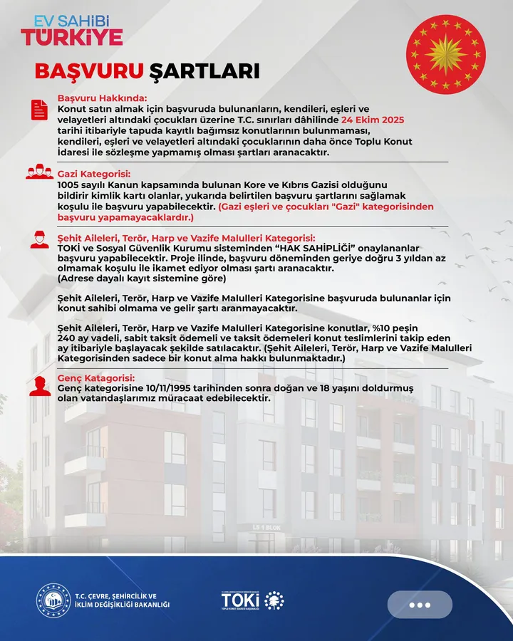 -Özel Kontenjanlar: Şehit Aileleri, Gaziler, Emekliler, Gençler ve 3️⃣ Çocuklu Aileler için özel yaş ve ikamet şartlarını kontrol etmeyi unutmayın.